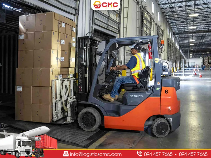 - Bốc xếp hàng hóa: Sử dụng xe nâng hoặc hệ thống tự động đưa hàng đến cửa xuất (Outbound Dock)