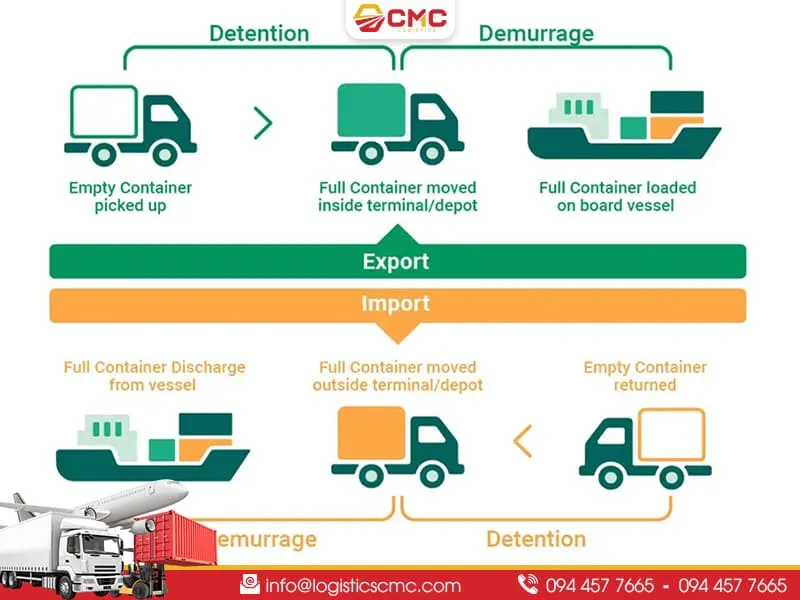 - Hàng nhập: Sau khi rút hàng xong tại kho, chủ hàng chậm trễ trong việc trả vỏ container rỗng về đúng vị trí (Depot) mà hãng tàu chỉ định