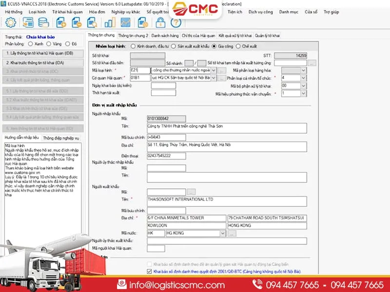 Sau đó, bạn sử dụng Phần mềm khai báo Hải Quan để truyền dữ liệu lên Hệ thống VNACCS/VCIS. Ở bước này, cần tập trung chú ý khai báo thông tin, bất kỳ sai sót nhỏ nào cũng có thể dẫn đến việc bác tờ khai.